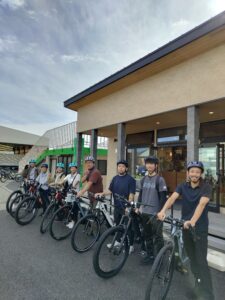 小國神社まで、ショートコースサイクリングに出発! いいところ 2025.10.11 ご勤務先の研修で、eBikeレンタルガイドツアーをご利用頂きました。 午前中のショートコースで、小國神社までご案内しました。 薄曇りで、eBikeで走行するには丁度良い日よりです。 出発前はすこし緊張気味だった方も、走っていくうちにだんだんと柔らかな笑顔になって行かれて、帰店した際にはみなさんすっかり大きな笑顔! 今回は、ショートコースでしたが、次回はぜひ、街なかやアクティ方面へも足を延ばしてください。 ご利用ありがとうございました!